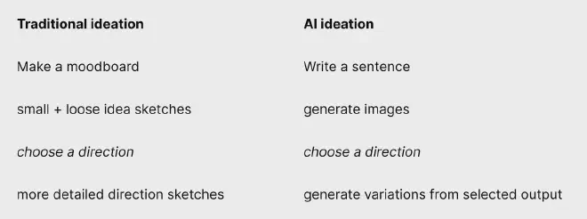 Similar to the traditional ideation when working with AI you can refine a direction. With Dall-E you can create variations from a selected output.